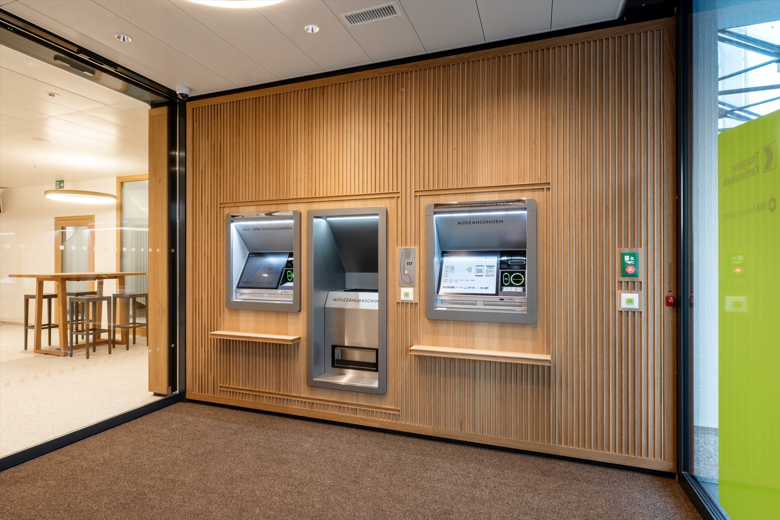 Die Bankräumlichkeiten der TKB Müllheim an der Frauenfelderstrasse 2 sind während fünfeinhalb Monaten umfassend renoviert und modernisiert worden. Die Arbeiten hat die TKB wo immer möglich ans lokale Gewerbe vergeben. Neu präsentiert sich die Geschäftsstelle als zeitgemässe Beratungsbank. Die neue Kundenhalle ist moderner und die einzelnen Räume bieten eine angenehme Atmosphäre für ungestörte Beratungsgespräche. Der Eingangsbereich ist als 24-Stunden-Zone mit zwei Bancomaten ausgestattet, in der rund um die Uhr Franken und Euro eingezahlt oder bezogen werden können.